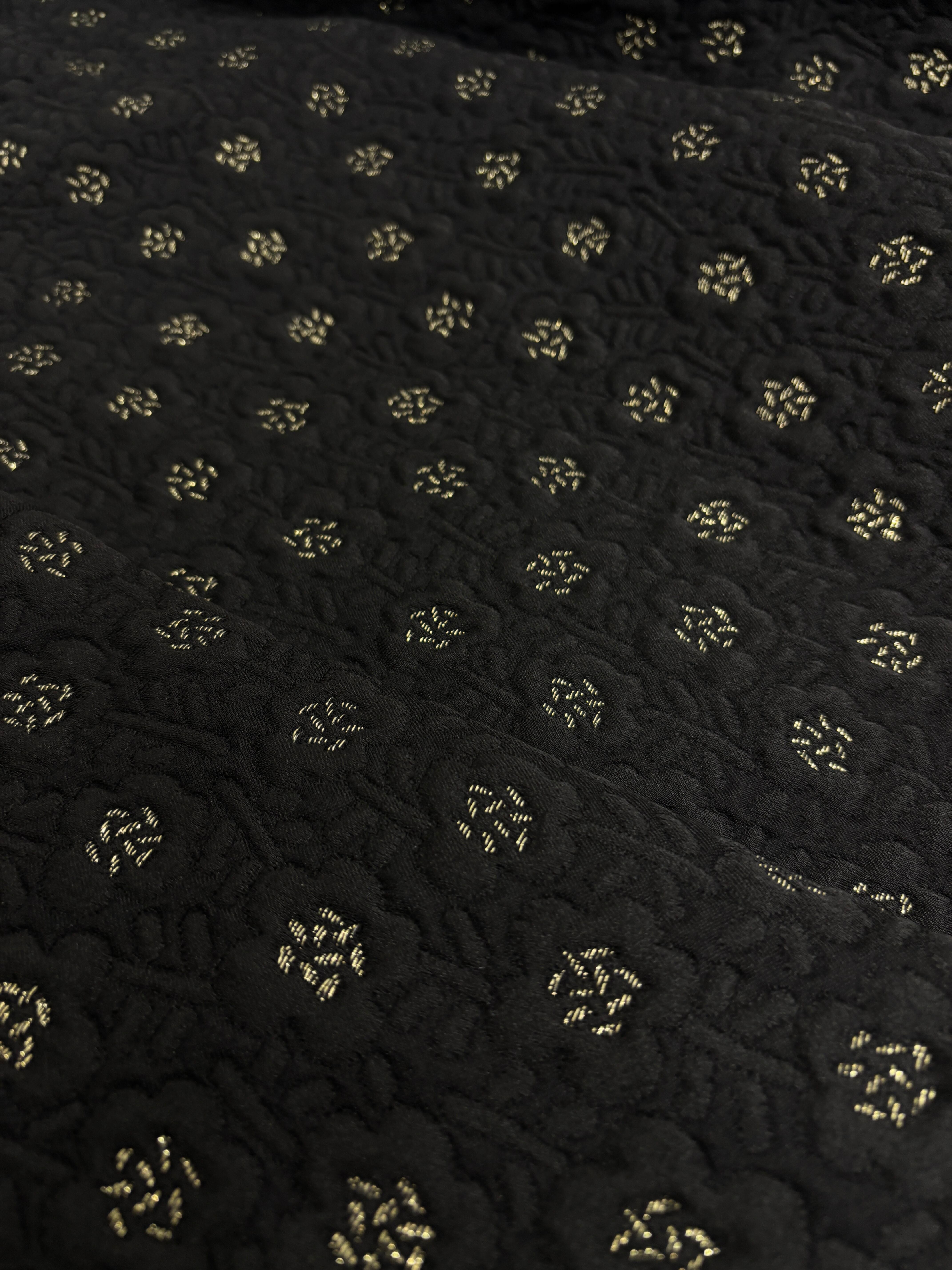 立体的なフラワーモチーフに、さりげなくラメを効かせたキルト生地。