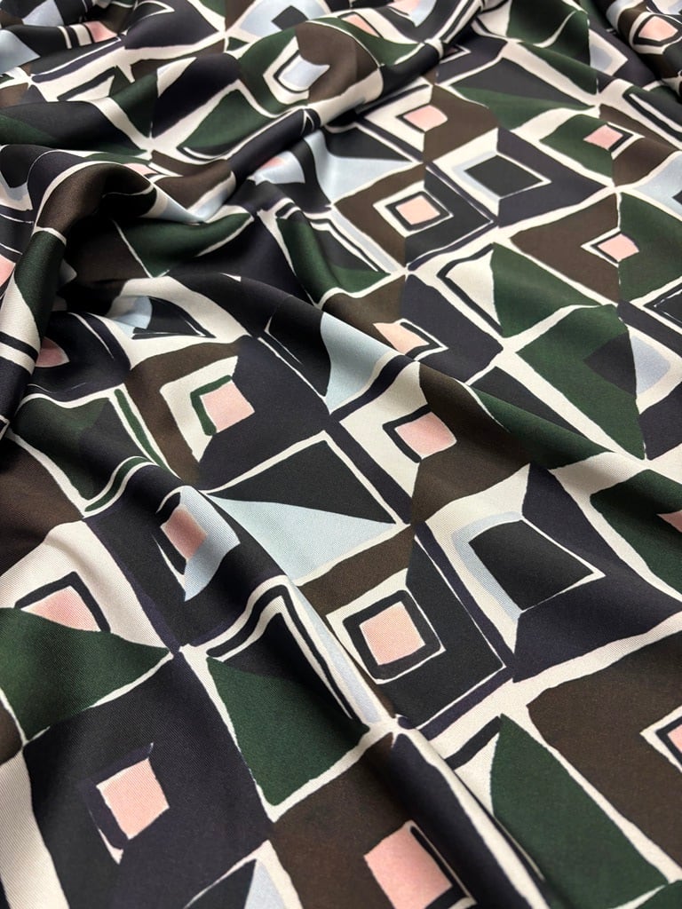イタリアの生地メーカー NEWconcepts による、モダンなジオメトリ柄のプリント生地。