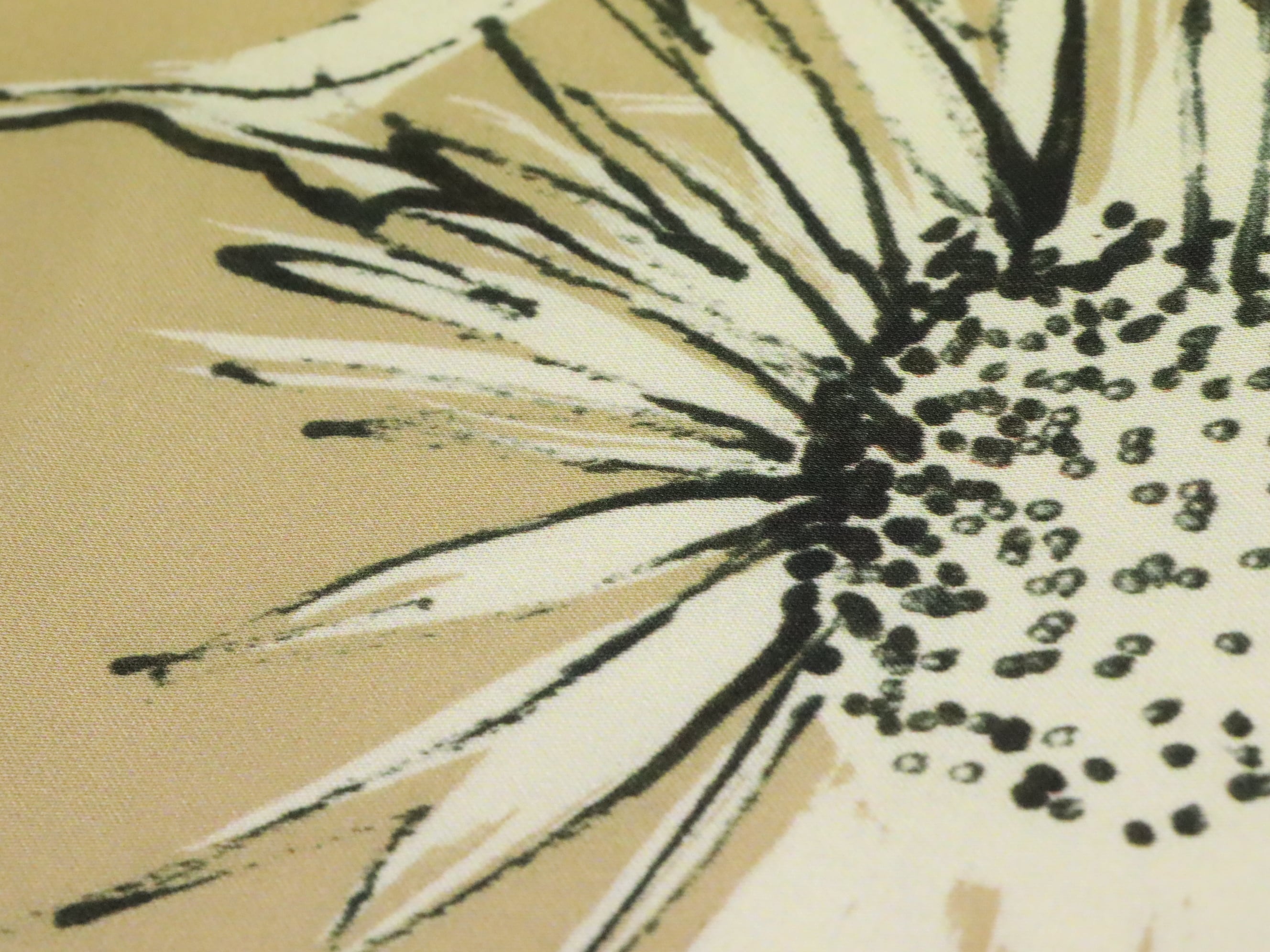 サテンの上品な光沢感とフラワープリントが魅力的な生地。