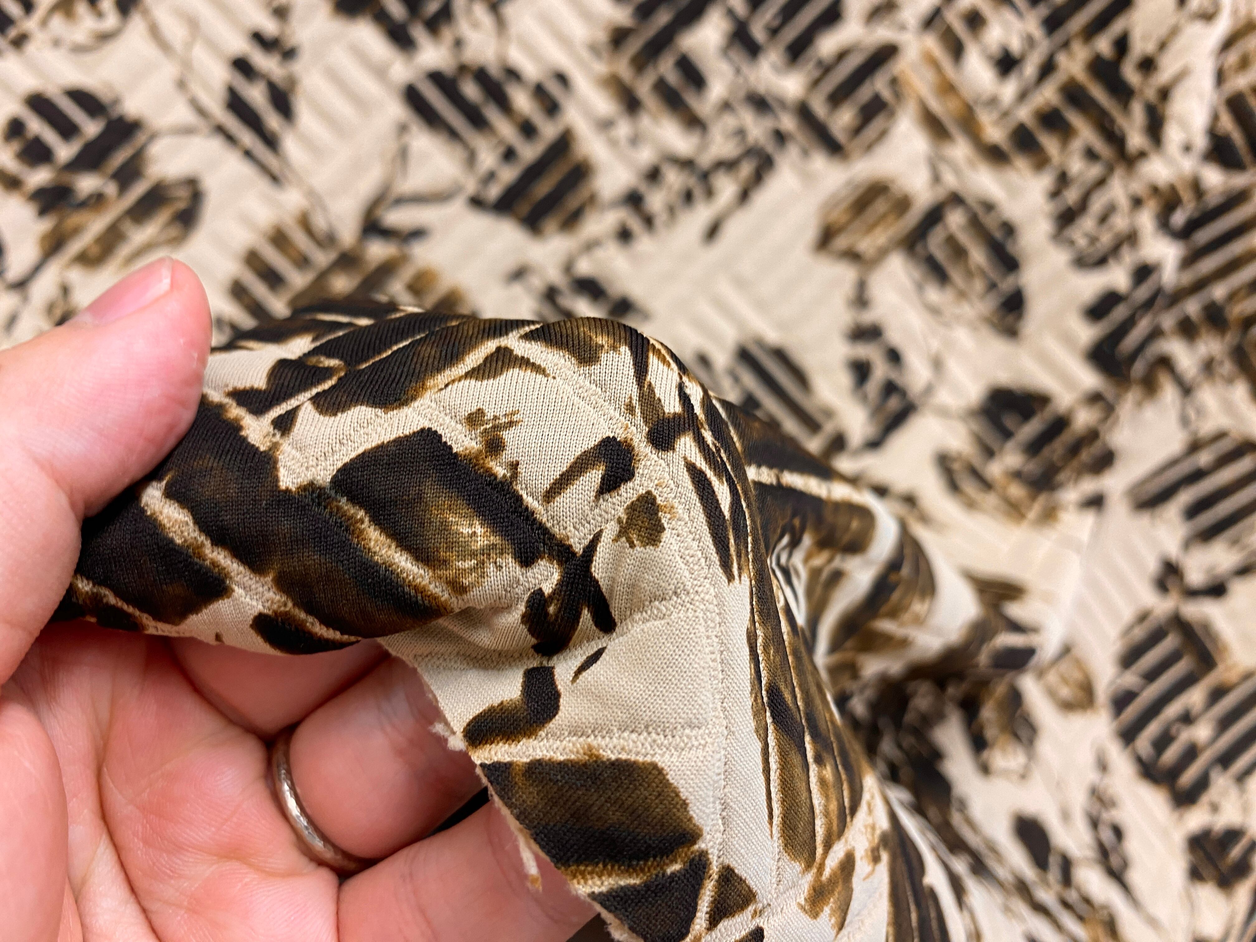 キルティングデザインが施されたポリエステル素材のプリント生地。